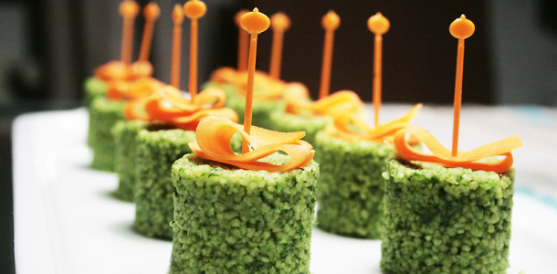 Come nella foto potete tagliare delle striscioline di carota con il pelapatate e ripiegarle per creare una decorazione. Questo finger food è preferibile appunto di piccole dimensioni proprio perché è ideale per un buffet o un aperitivo.