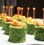 Creare un cono su un piatto da portata e decorarlo coi pomidoro scolati ed il trito di prezzemolo.